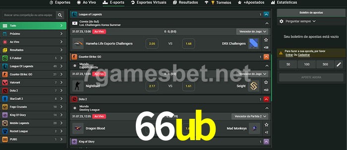 O 66ub oferece uma grande seleção de opções de apostas em e-sports com probabilidades competitivas